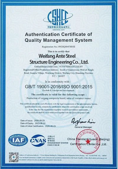 Weifang ante Steel Engineering Co, Ltd diadegaké ing taun 2013, sing ana ing zona pangembangan peraya ing Weicheng, ing cedhak dalan gedhe, bandara lan port segara.